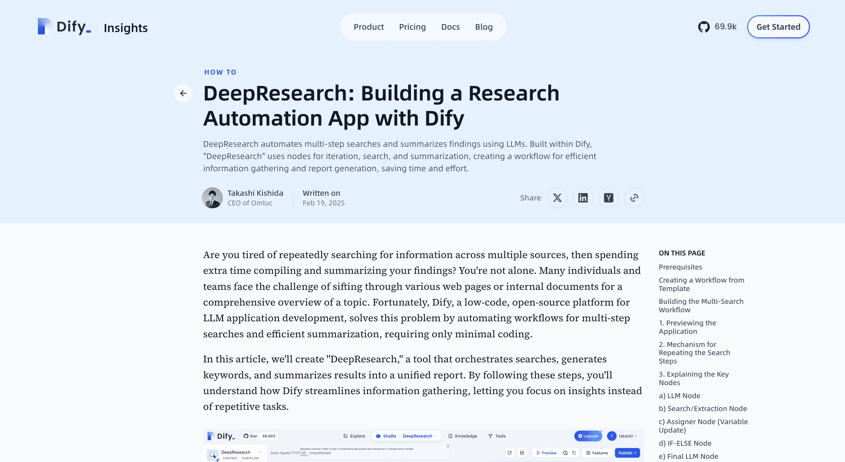 弊社代表・岸田が、Dify公式ブログに記事「DeepResearch: Building a Research Automation App with Dify」を寄稿いたしました。